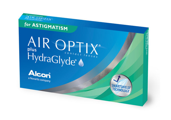 Air Optix Plus Hydraglyde for Astigmatism jsou moderní torické kontaktní čočky od výrobce Alcon. Jsou navrženy tak, aby účinně korigovaly zrakové abnormality způsobené astigmatismem. Technologie SmartShield bojuje proti usazování bílkovin a lipidů, což zajišťuje hygienický komfort díky hladkému povrchu a menšímu tření mezi okem a víčkem. Exkluzivní HydraGlyde Moisture Matrix zajistí dlouhodobou hydrataci a ochranu před podrážděním až po dobu 16 hodin. Silikon-hydrogelový materiál s vysokým obsahem vody zajišťuje jedinečnou propustnost kyslíku pro zdravé oči.