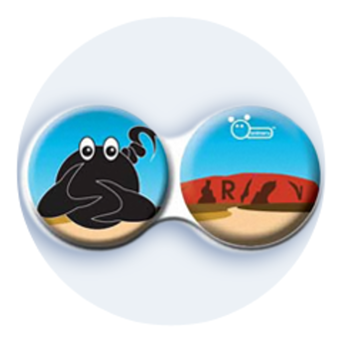 Antibakteriální pouzdro ze série austrálie je určeno na uchovávání všech druhů měkkých kontaktních čoček. Toto speciální pouzdro je obohaceno ionty stříbra, které mají samy o sobě určitou schopnost ničit bakterie a desinfikovat, proto používáním antibakteriálního pouzdra násobíte také účinnost používaného roztoku na kontaktní čočky. Z hygienických důvodů se doporučuje pouzdra na kontaktní čočky po třech měsících používání vyměnit za nová. U pouzdra je motivem rozlišena pravá a levá strana.