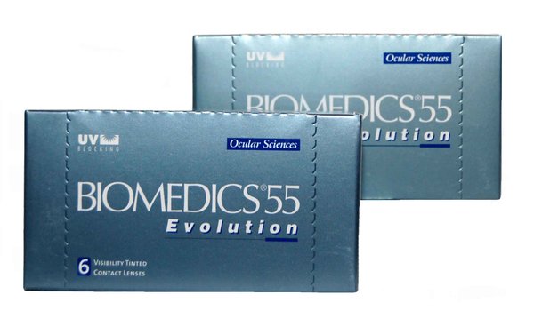 Kontaktní čočky BIOMEDICS 55 Evolution patří mezi cenově nejdostupnější a zároveň i velmi kvalitní kontaktní čočky. Mají UV filtr a manipulační zbarvení. Jejich asférická konstrukce zlepšuje optické vlastnosti a jsou velmi dobře snášeny. V mínusových dioptriích jsou Biomedics 55 Evolution k dostání v zakřivení 8.6 a 8.9 a v plusových dioptriích pouze v zakřivení 8.8!