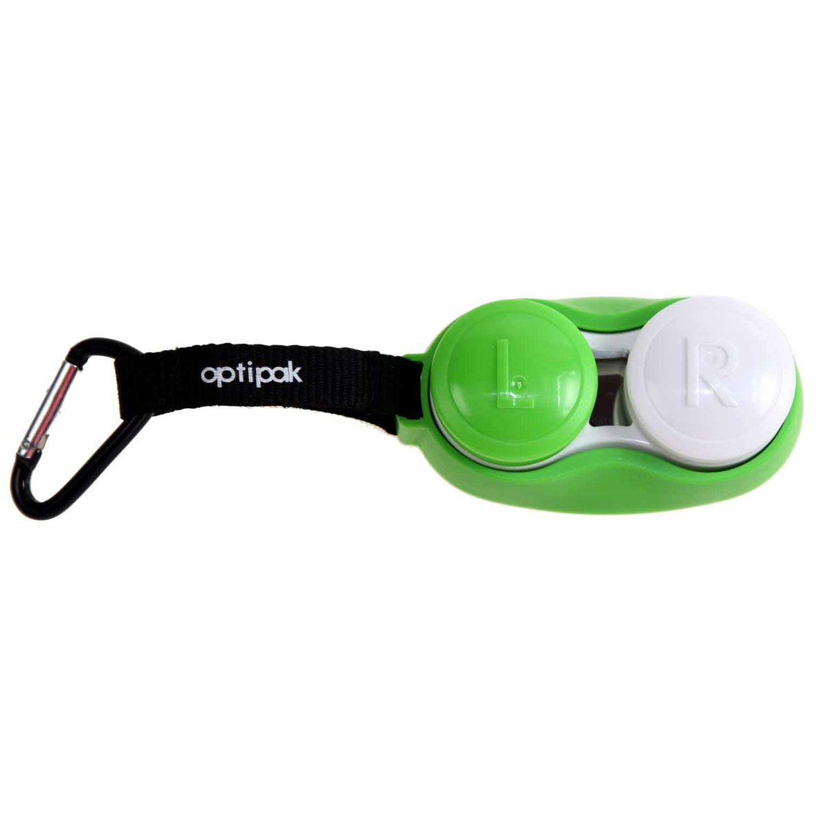 Netradiční pouzdra na měkké kontaktní čočky s karabinkou k upevnění např. v kabelce nebo batohu. Obsahuje antibakteriální pouzdro a integrované zrcátko.