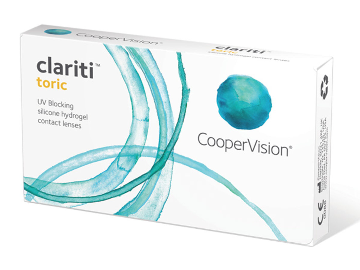 Clariti Toric jsou měsíční kontaktní čočky od společnosti CooperVision určené ke korekci astigmatismu. Svým nositelům kromě výhod silikon-hydrogelového materiálu nabízí i optimální design a využití unikátní technologie WetLoc, která udržuje čočky přirozeně vlhké a pohodlné. Poskytují tak skvělé vidění a vysoký komfort nošení. Jsou rovněž opatřeny UV filtrem.