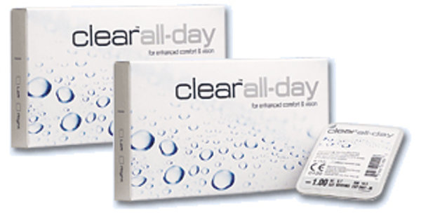 Clear all Day - kontaktní čočky určené pro plánovanou měsíční výměnu. Anglický výrobce Clearlab vyvinul materiál clearGMA jenž má až 5 x vyšší schopnost vázat vodu než ostatní kontaktní čočky. Kontaktní čočky Clear all Day mají výrazně vyšší odolnost proti vysoušení a proto je jejich nošení dlouhodobě příjemné. Díky svému asférickému povrchu jsou vhodné pro korekci sférických aberací. Uvidíte ostře i za šera a zhoršených světelných podmínek. Kontaktní čočky Clear all Day mají vyšší smáčenlivost povrchu a vysokou odolnost proti ukládání depozit, což přispívá k maximálnímu pohodlí při nošení kontaktních čoček Clear all Day.