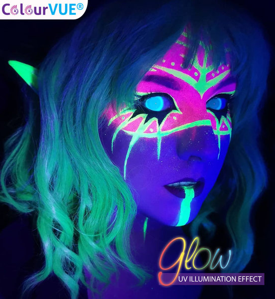 UV illuminant - Roční hydrogelové crazy čočky (2 kusy, uložené v lahvičkách) s iluminačním efektem. Změní barvu očí a navíc se ve tmě pod UV osvětlením tyto čočky doslova rozzáří. Chcete být hvězdou na diskotéce? Toto je ta pravá volba, jak na sebe na 100% upoutáte maximum pozornosti! Crazy čočky, které dokáží fantastickým způsobem změnit výraz každé tváře nejen při UV osvětlení (kromě Electric Blue, které jsou bez UV osvětlení čiré a bezbarvé). Překryjí každou barvu oka.