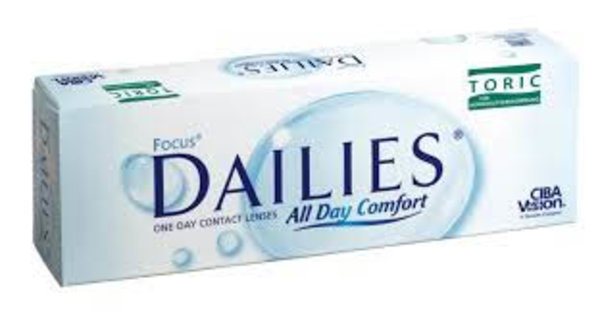 Focus Dailies Toric rozšiřují řady velice oblíbených jednodenních kontaktních čoček Focus Dailies sférických. Ve dvou základních cylindrech a osách kontaktní čočky Focus Dailies Toric řeší základním způsobem problematiku astigmatismu. Jejich vysoký komfort nošení je zajištěn díky zvlhčujícímu systému Aqua Comfort. Nepotřebujete žádný roztok. Jednoduše ráno nasadíte a večer vyhodíte. Focus Dailies Toric navíc obsahují složku PVA, která se uvolňuje mrkáním, takže je kontaktní čočka Focus Dailies Toric dlouhodobě příjemná.