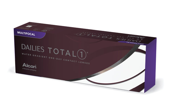 Dailies Total 1 Multifocal zajistí dokonale ostré vidění na blízkou, střední i dalekou vzdálenost. Světle modré zbarvení čoček usnadňuje manipulaci. Patří mezi celosvětově nejprodávanější jednodenní kontaktní čočky. Obsahují zvlhčující složku, která se uvolňuje mrkáním a udržuje čočku ve zvlhčeném stavu. Mají proměnný obsah vody: ve vnitřní části čočky směrem k povrchu z 33 % až k 80 %, na vnější části povrchu se blíží až k 100 %. Redukují příznaky suchých očí – obsahují fosfatidylcholin, který je i základní stavební složkou slz a díky němu se stabilizuje vrstva lipidů. Spojení těchto parametrů Vám zajišťuje výjimečný pocit pohodlí po celý den. Snadno se aplikují a na oku je téměř necítíte. Jednodenní způsob nošení je pro oko nejzdravější, protože si každý den nasadíte do oka novou, sterilní kontaktní čočku. Díky tomu nepotřebujete ani žádné desinfekční roztoky pro péči o čočky.