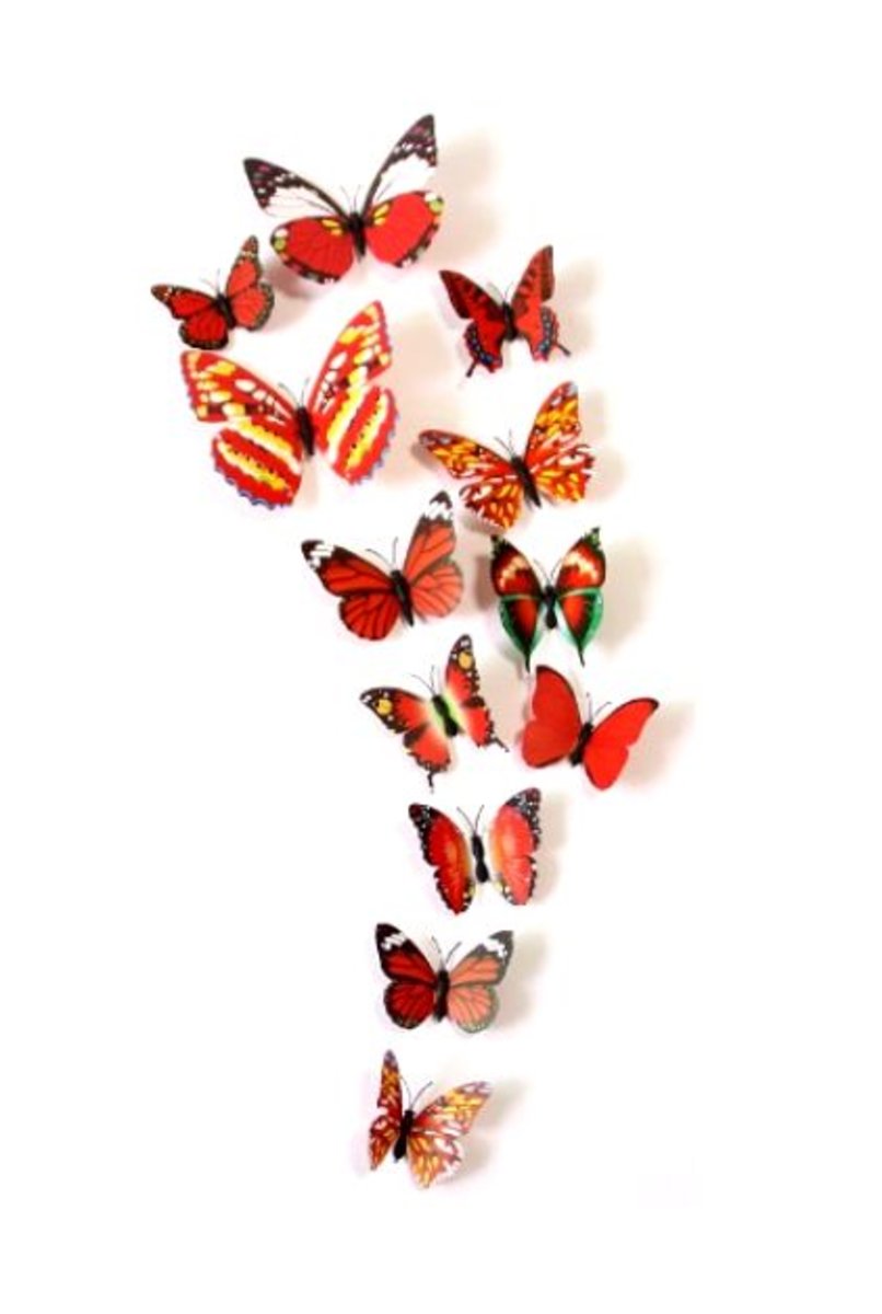 Dekorativní motýlci na zeď 2 kusy - barva červená