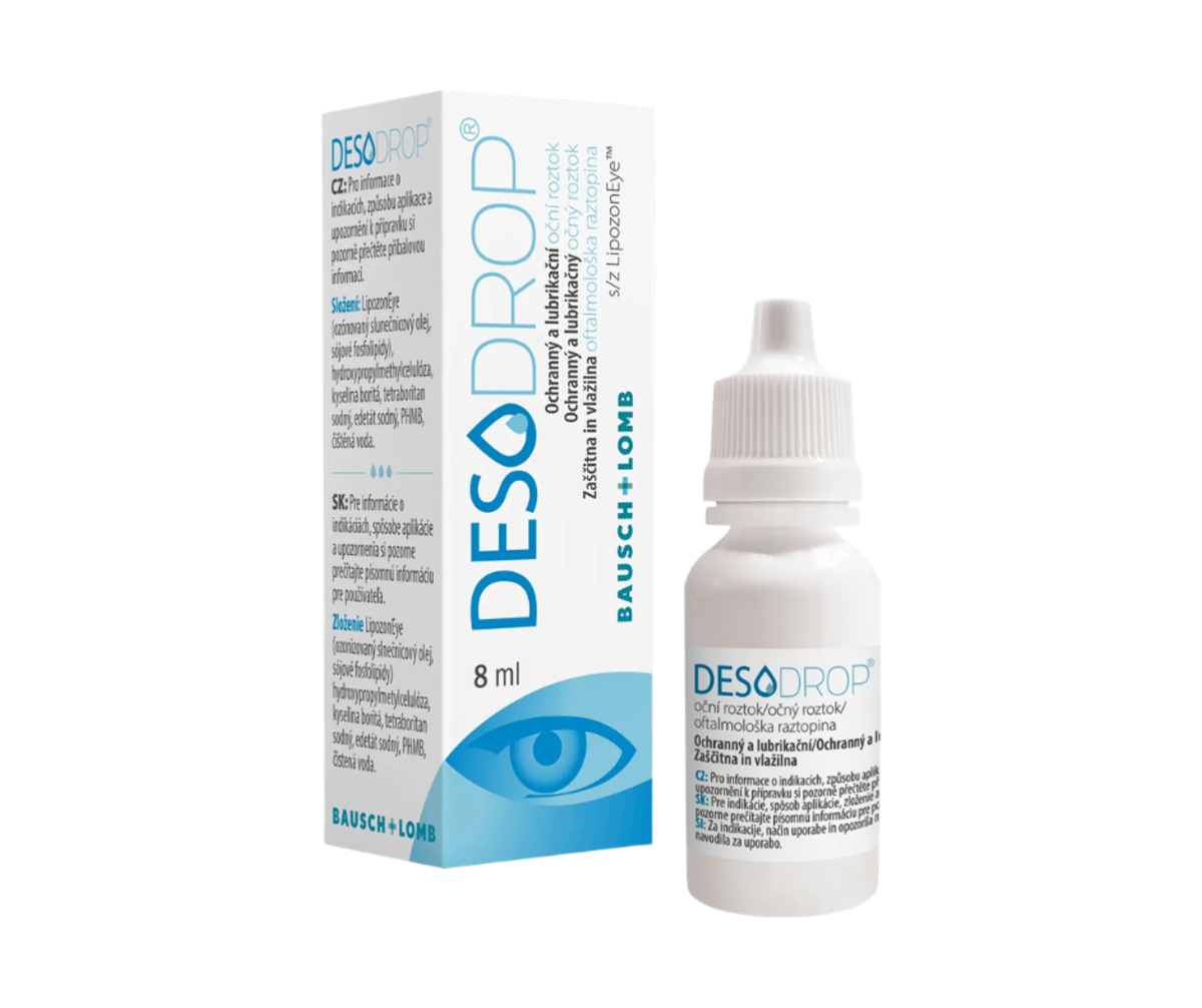 DESODROP je ochranný a lubrikační oční roztok, který pomáhá zvlhčovat povrch oka, podporuje stabilitu slzného filmu a přispívá k ochraně očí před podrážděním. Přináší úlevu při pocitu suchých, unavených nebo podrážděných očí způsobených například dlouhodobou prací na počítači, klimatizací, prachem či dalšími vnějšími vlivy.