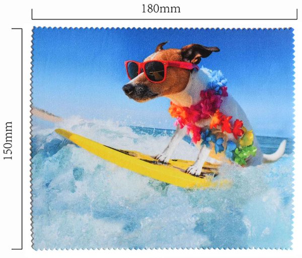 Stáhnout příbalový leták k produktu Hadřík na brýle z mikrovlákna - motiv pes na surfu.