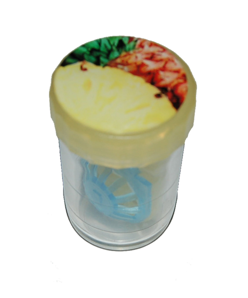 Středně hluboké plastové pouzdro s motivy ovoce. Na výběr je několik vzorů. Kontaktní čočky pečlivě vložte do výklopných košíčků a zaklapněte. Dávejte pozor aby se kontaktní čočky nepřiskříply. Nepoužívat k roztokům na peroxidové bázi!