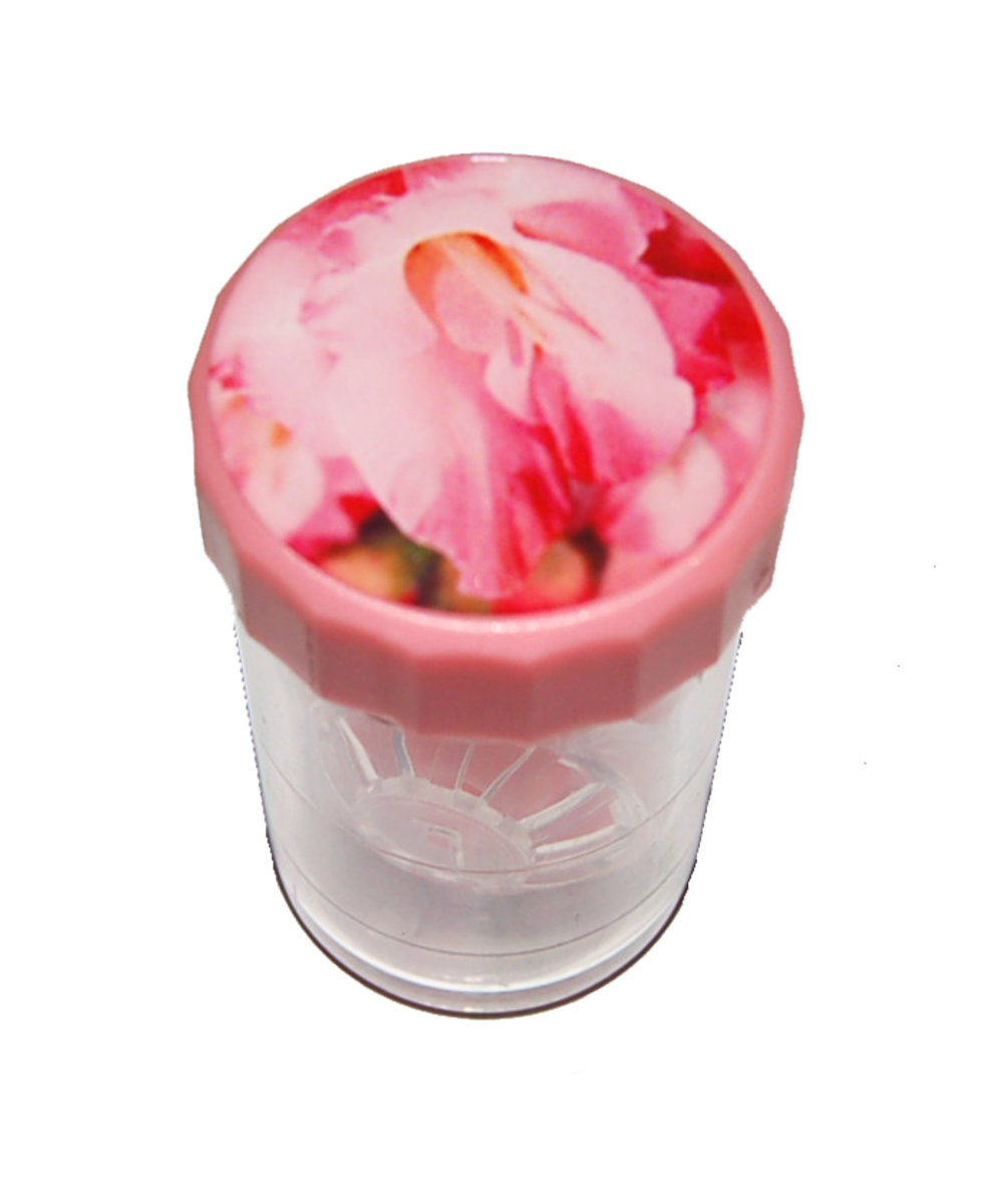 Středně hluboké plastové pouzdro s motivy květin. Na výběr je několik vzorů. Kontaktní čočky pečlivě vložte do výklopných košíčků a zaklapněte. Dávejte pozor aby se kontaktní čočky nepřiskříply. Tato pouzdra nepoužívat k roztokům na peroxidové bázi!