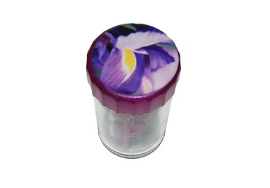 Středně hluboké plastové pouzdro s motivy květin. Na výběr je několik vzorů. Kontaktní čočky pečlivě vložte do výklopných košíčků a zaklapněte. Dávejte pozor aby se kontaktní čočky nepřiskříply. Tato pouzdra nepoužívat k roztokům na peroxidové bázi!