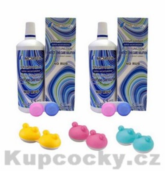 Horien 2x360 ml - universální roztok na kontaktní čočky. Při používání roztoku Horien není potřeba kontaktní čočky mnout, pouhé opláchnutí a namočení udrží čočky čisté. Horien UltraComfort Super Moisturizing Multi-Purpose Solution efektivně eliminuje více jak 99,9% bakterií a mikroorganismů. Odstraněním nánosů proteinů díky Horienu, udržíte čočky čisté jako při prvním použití. Speciální složení zaručí čočkám celodenní vlhkost a lubrikaci. PH 7,4 blízké lidským slzám slibuje celkový komfort nošení kontaktních čoček s péčí roztoku Horien.
