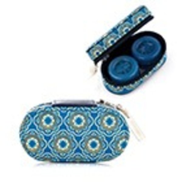 Kožené pouzdro s motivem a zrcátkem na kontaktní čočky obsahující plastové pouzdro na kontaktní čočky v odstínu barvy pouzdra koženého. Obsahuje zrcátko pro snazší aplikaci kontaktních čoček na cestách. Pouzdro je uzavíratelné zipem.