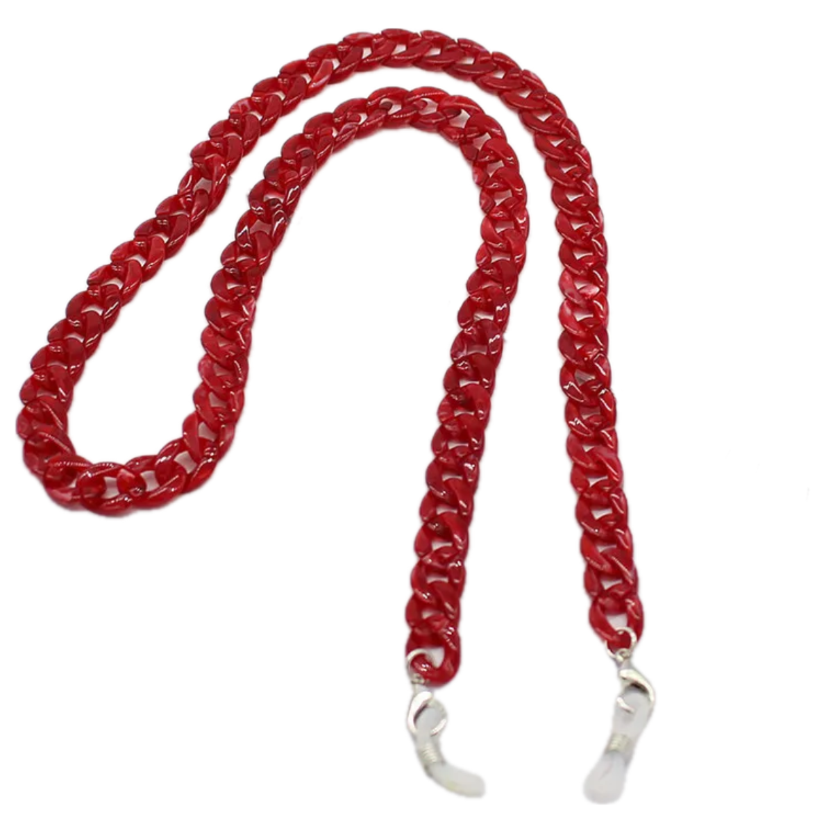 Módní řetízek na brýle - dostupný ve 12 barevných variantách. Řetízek je na obou stranách zakončen gumovou karabinkou. Natavitelný upínací prvek umožňuje řetízku zapadnout do všech brýlí. Lze použít jako řetízek na sluneční a dioptrické brýle nebo jako náhrdelník či náramek (gumička na připevnění k brýlím je snímatelná).