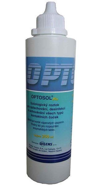 OPTOSOL plus 250 ml je moderní fyziologický roztok s malým přídavkem konzervantu pro oplachování, desinfekci a uchovávání všech typů kontaktních čoček. Lze jej použít také k rozpouštění enzymatických tablet. Zabraňuje vápenatým usazeninám.