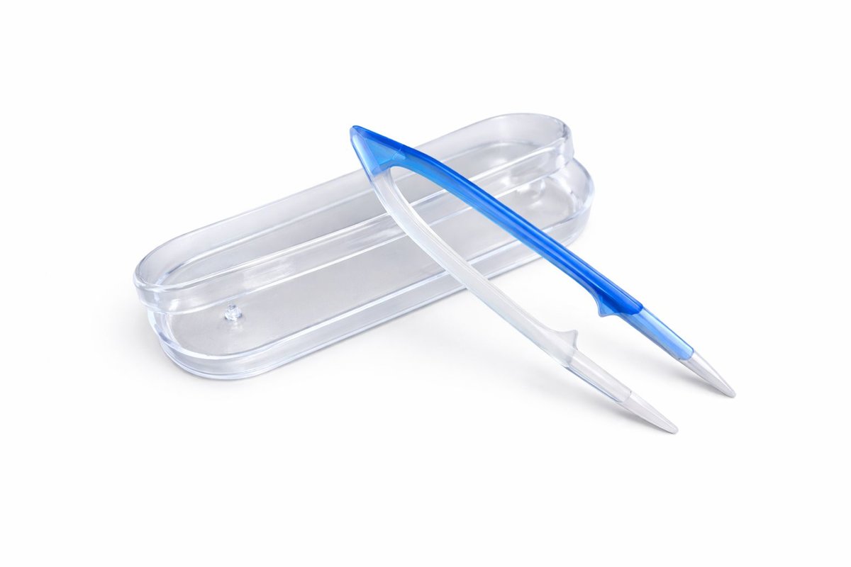 Pinzeta na kontaktní čočky v pouzdře, velká - modro-transparentní