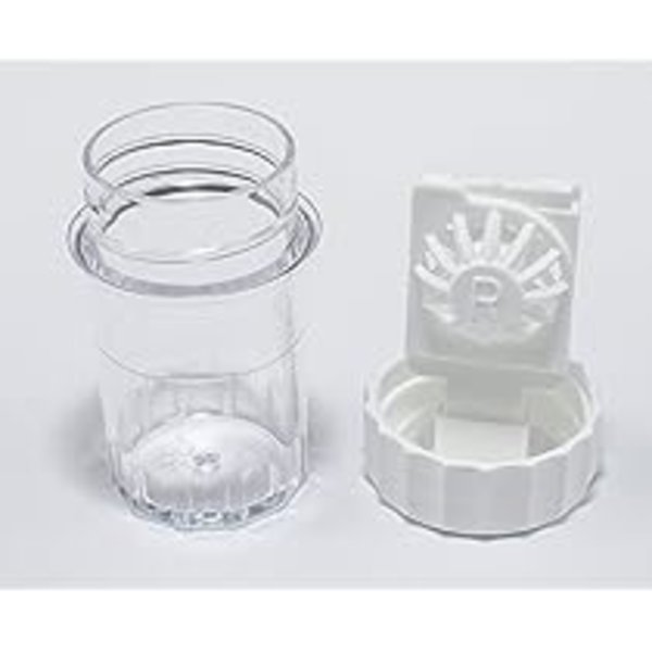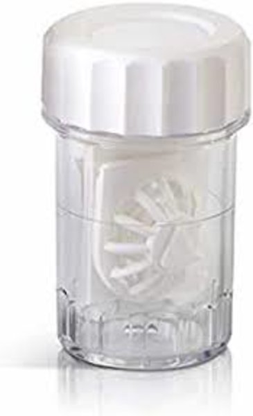 Středně hluboké plastové pouzdro bílé. Kontaktní čočky pečlivě vložte do výklopných košíčků a zaklapněte. Dávejte pozor aby se kontaktní čočky nepřiskříply. Tato pouzdra nepoužívat k roztokům na peroxidové bázi!