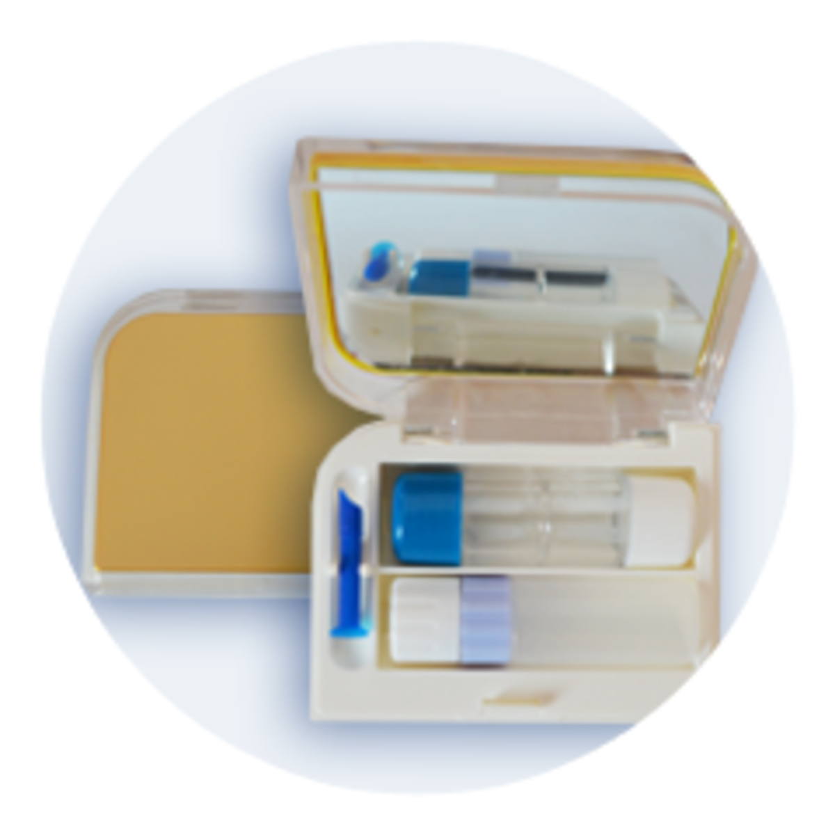 Pouzdro na tvrdé čočky - sestava - obsahuje plastové pouzdro na tvrdé kontaktní čočky, aplikátor, zrcátko a nádobkou na roztok. Tvrdé kontaktní čočky vložte mezi "packy" úchytů na čočky, které jsou přidělány k jednotlivým, barevně odlišeným víčkům. Do nádobky nalijte čistící roztok určený pro péči o tvrdé kontaktní čočky a nechte působit. Dodržujte návody k použití, protože se u různých roztoků mohou měnit.