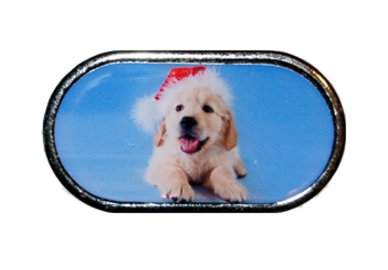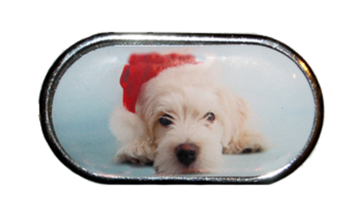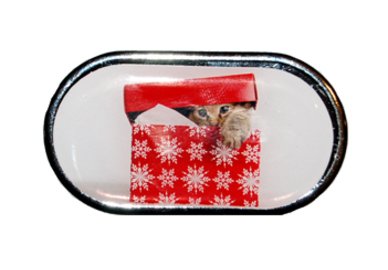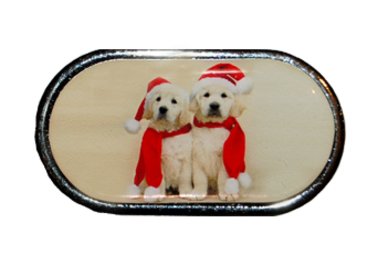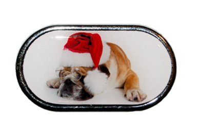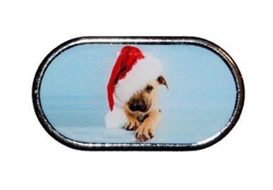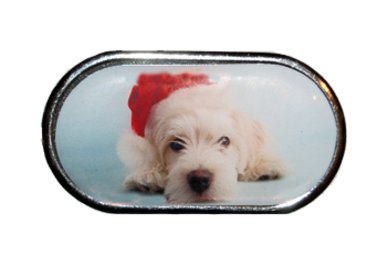 Pouzdro se zrcátkem Vánoční motiv - Dlouhosrsté štěně v čepici