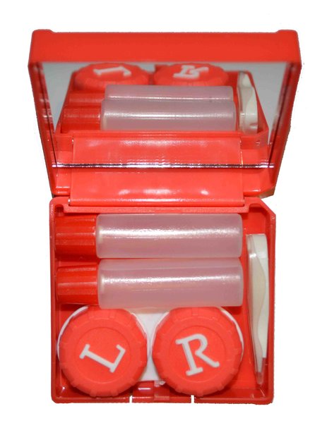 Pouzdro sestava Disketa - toto pouzdro obsahuje vnitřní plastové pouzdro na kontaktní čočky, pinzetku a nádobku na roztok. V pouzdře je zrcátko pro snažší aplikaci kontaktních čoček na cestách. Celé uzavíratelné.