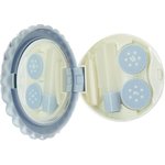 Pouzdro sestava Makronka - toto pouzdro obsahuje vnitřní plastové pouzdro na kontaktní čočky, pinzetku, aplikátor a nádobku na roztok. V pouzdře je zrcátko pro snažší aplikaci kontaktních čoček na cestách. Celé uzavíratelné.