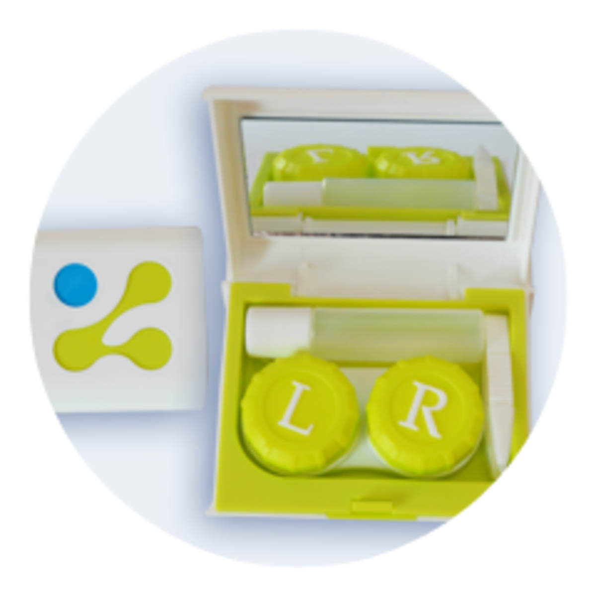 Pouzdro s motivem - sestava - tato pouzdra obsahují vnitřní plastové pouzdro na kontaktní čočky ve stejné barvě pouzdra, pinzetku a nádobku na roztok. V pouzdře je zrcátko pro snažší aplikaci kontaktních čoček na cestách. Celé uzavíratelné.