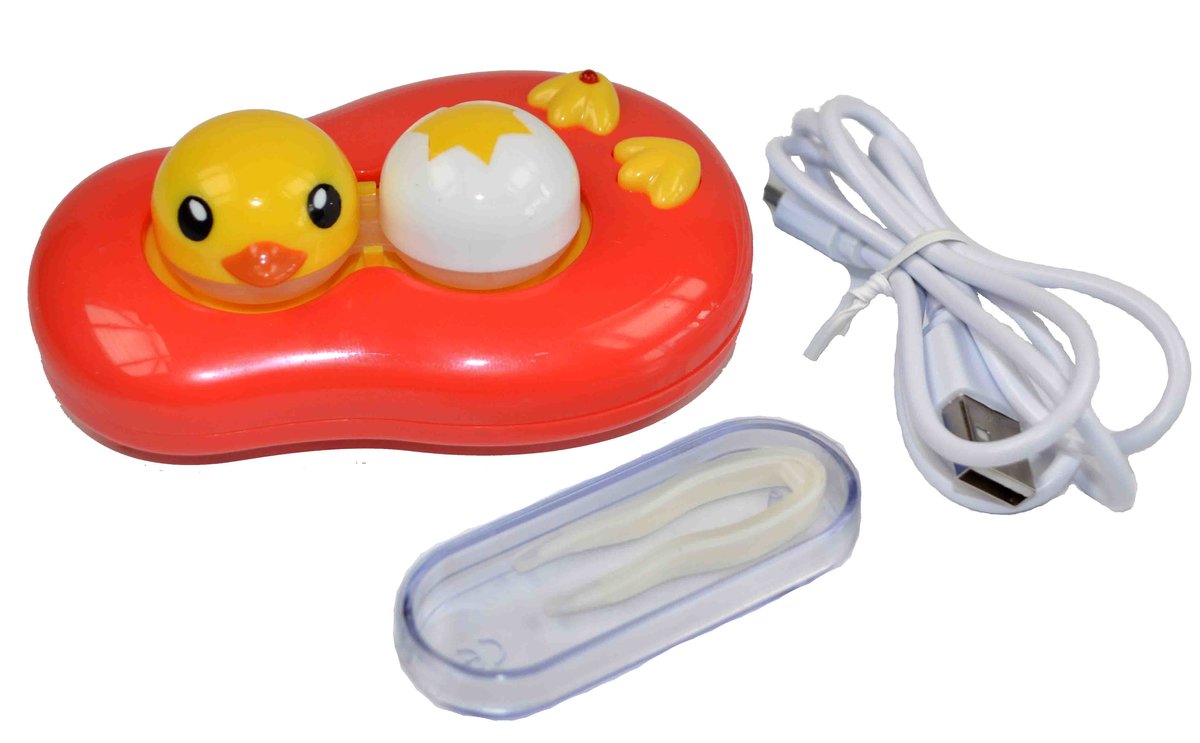 Pouzdro vibrační kačenka s pinzetou - vibrace se postarají o dokonalou čistotu vašich čoček. Pouzdro je na 1x AAA baterii nebo USB kabel. Kabel je součástí balení. Baterie AAA není součástí balení.