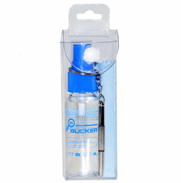 Čistící sprej - ideální roztok na bázi alkoholu pro čištění brýlových čoček všech druhů: skleněných, plastových s antireflexní úpravou i bez ní. Rovněž může čistit čočky v objektivech fotoaparátů, kamer, zvětšovacích lup, nebo dalekohledů, případně dalších optických pomůcek.