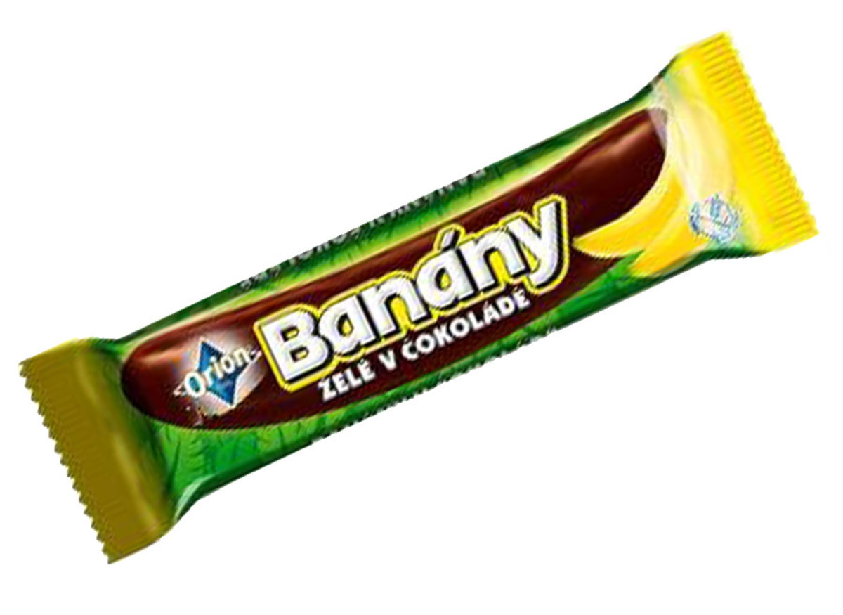 Dejte si oblíbenou tyčinku s banánovým želé máčenou v hořké čokoládě. Obsahuje pouze přírodní aromata a barviva. Bez lepku. Želé s chutí banánů 74 % máčené v hořké čokoládě 26 %.