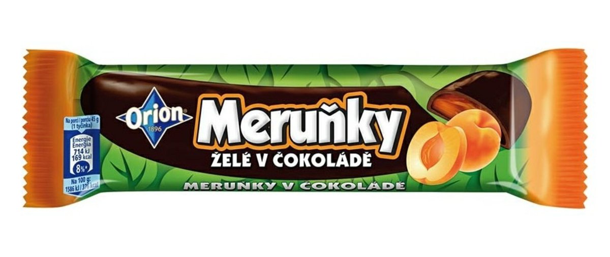 Želé s chutí meruněk máčené v hořké čokoládě. Nebojte se vyzkoušet nový přírůstek do rodiny ORION Meruňky v čokoládě, který svou nevšední chutí potěší každého, kdo jej ochutná. Velice oblíbená příchuť meruňky ve spojení s hořkou čokoládou nadchne vaše chuťové buňky.
